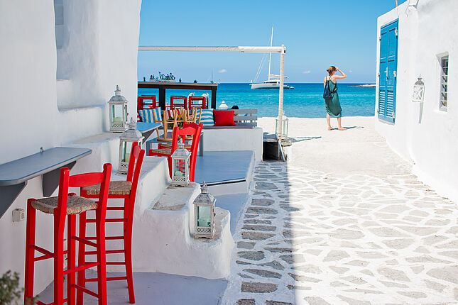 Rund 50 Eilande zählen zu dieser Inselgruppe, die im Kreis – im Kyklos – rund um die einst heilige Insel Delos angeordnet liegen. Und auf jeder Insel finden sich neue postkartenschöne Motive: auf Santorin beispielsweise den rötlich-schimmernde Vulkankrater und auf Delos mit die beeindruckendsten Ausgrabungen der griechischen Antike.