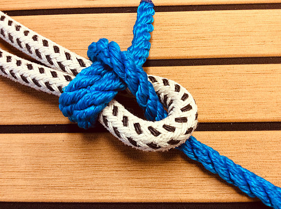 ► Seemännische Knoten (Achtknoten, Kreuzknoten, Palstek, einfacher Schotstek oder doppelter Schotstek, Stopperstek, Webleinstek, Webleinstek auf Slip, Rundtörn mit zwei halben Schlägen, Belegen einer Klampe mit Kopfschlag)